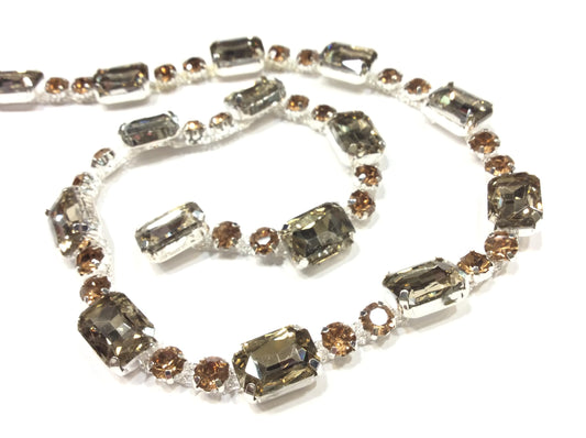 1 applicazione catena gioiello da cucito rifiniture e abbellimenti tralcio pietre navette crystal cm 18
