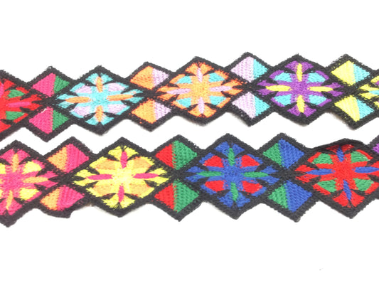 1 metro Nastro Decorativo Ricamato con Motivi Floreali, Multicolore, Stile Etnico, cm 7