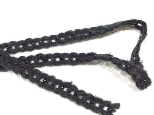 1 METRO PASSAMANERIA LANA CM 2 TRAFORATA CON PERLINE NERE