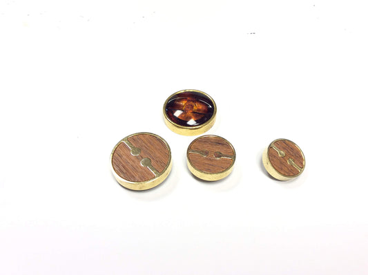BOTTONE COUTURE 1968 2 BUCHI ORO LEGNO CM 3