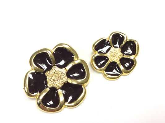 BOTTONE GIOELLO FIORE OTTONE ORO E MARRONE CM 2,5