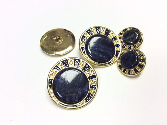 BOTTONE GIOELLO OTTONE ORO DECORAZIONE BLU CM 1,8