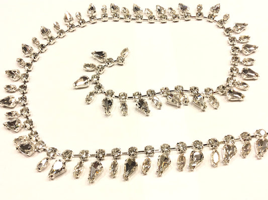 1 mt passamaneria a FRANGIA gioiello da cucito base argento pietre e strass