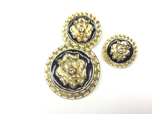 BOTTONE GIOIELLO LEONE ORO LACCATO NERO A RILIEVO CM 3