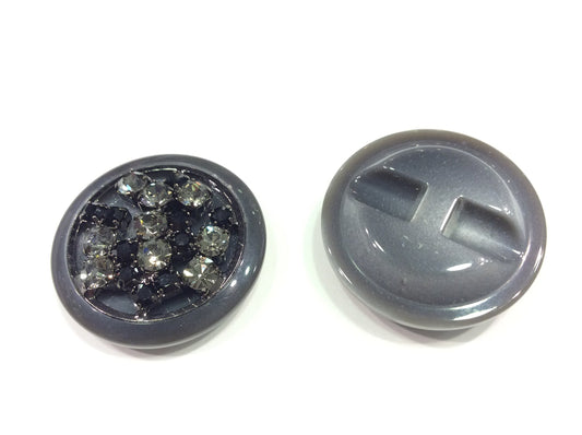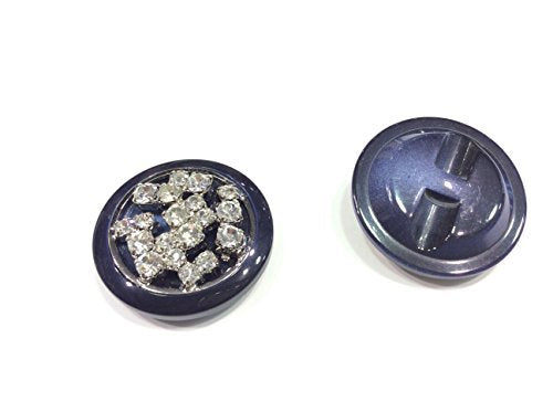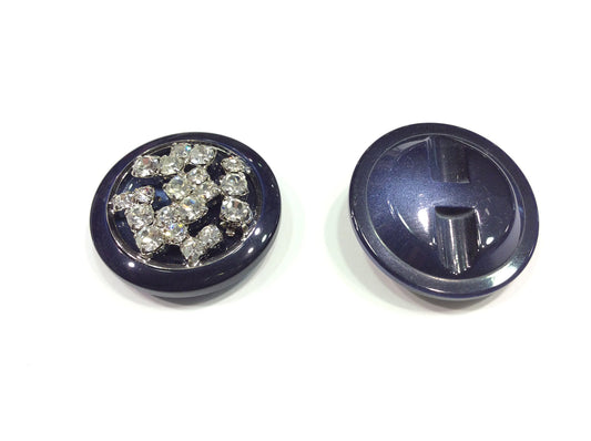 Bottone gioilello galalite blu pietre bianche cm 2,2