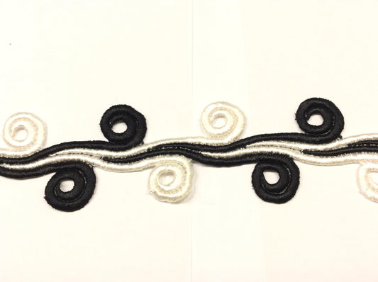 1 mt pizzo macramè bicolor bianco seta e nero a tralcio cm 4