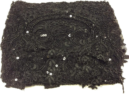 1 mt PIZZO RICAMO NERO PAILLETTES CORALLI CM 20