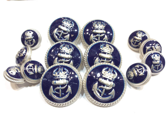 BOTTONI BLAZER MARINARI ANCORA ARGENTO E BLU CM 1,8