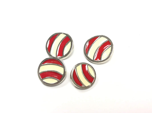 BOTTONI COUTURE 1968 TONDO ARGENTO ROSSO E BIANCO AVORIO CM 2,5