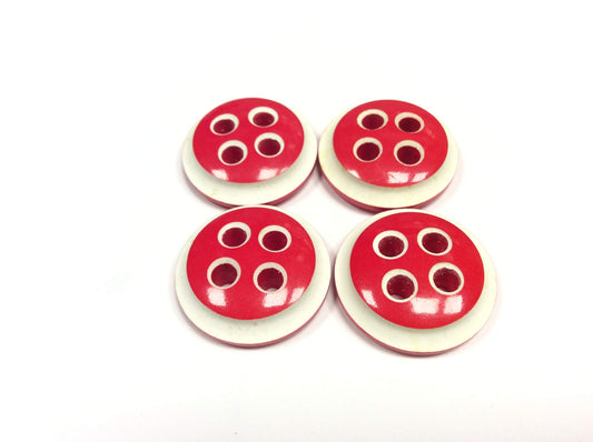 BOTTONI VINTAGE ROSSO BIANCO 4 BUCHI CM 2,5