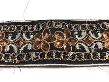 D'Addario 1 MT PASSAMANERIA BORDURA CM 7 Nero Decorazione Lurex Bronzo E Paillettes