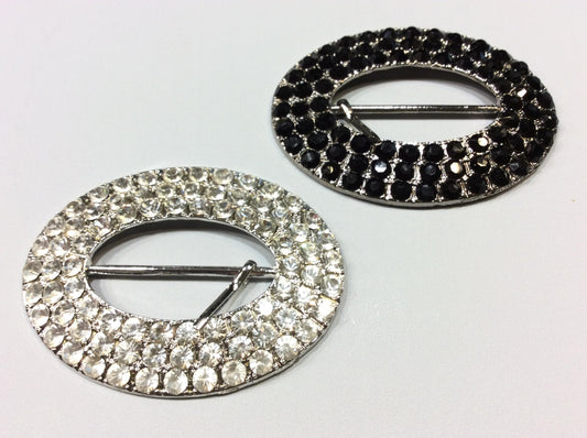 FILMODA Fibbia Ovale con Cristalli, 4,5 cm, Nero e Crystal Decorativa per Cinture