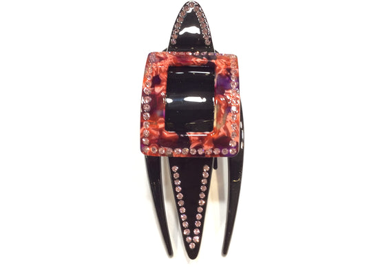 PINZA A PETTINE CELLULOSA ROSSA CON PIETRE