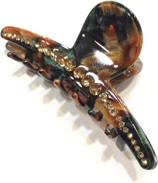 PINZA PER CAPELLI ACETATO 14 DENTI CARAMELLO E VERDE