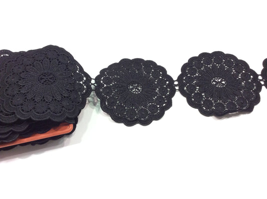 PIZZO MACRAMÈ NERO DISEGNO GEOMETRICO FLOREALE DIAMETRO CM 11,5