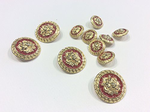 SET 10 BOTTONI GIOIELLO LEONE ORO & ROSSO