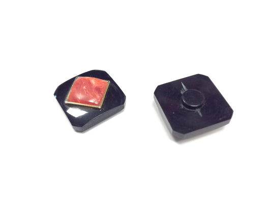 SET 10 BOTTONI COUTURE 1968 BASE NERO QUADRATO CORALLO CM 2,8