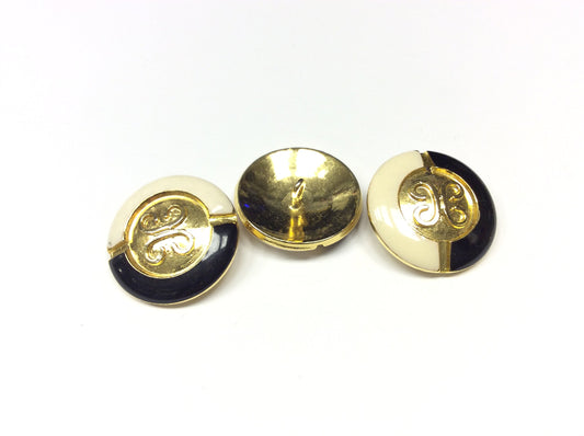 SET 10 BOTTONI GIOIELLO VINTAGE ORO SMALTATO PANNA E NERO CM 2,5