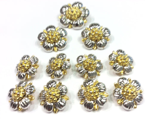 SET 11 BOTTONI GIOIELLO OTTONE FIORE ARGENTO & ORO