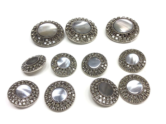 SET 11 BOTTONI GIOIELLO OTTONE MADREPERLA & STRASS GREY