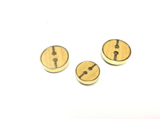 SET 12 BOTTONI COUTURE 1968 2 BUCHI ORO LEGNO BEIGE CM 2,5