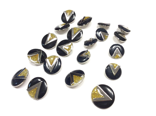 SET 20 BOTTONI GIOIELLO ARGENTO NERO E ORO