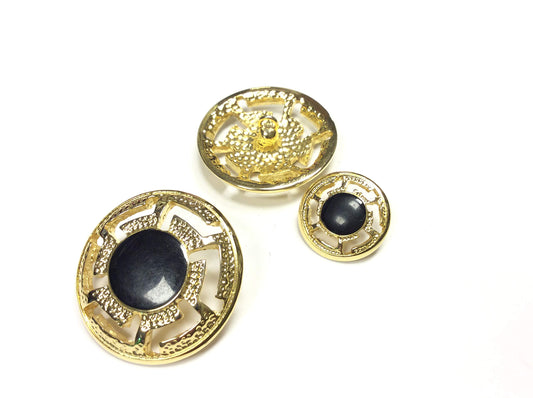 SET 3 PZ BOTTONI GIOIELLO ORO LACCATO NERO CM 3,2