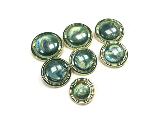 SET 8 BOTTONI GIOELLO VINTAGE VERDE E ORO