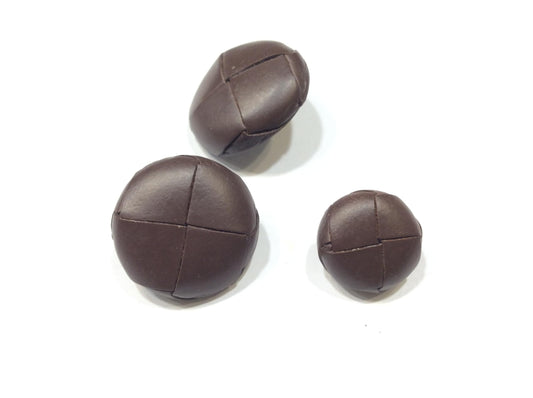 Set di 6 Bottoni in Pelle Marrone Scuro, Diametro 2,8 cm