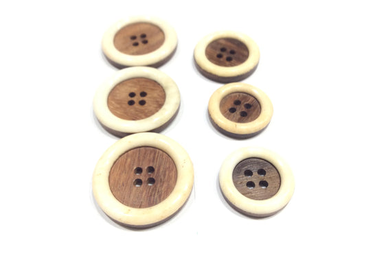 Set di 3 Bottoni Vintage in legno, Colore naturale, 4 Fori