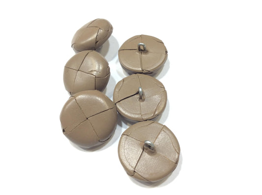 Set di 6 Bottoni in Pelle, 2,8 cm, Colore Fango Vintage