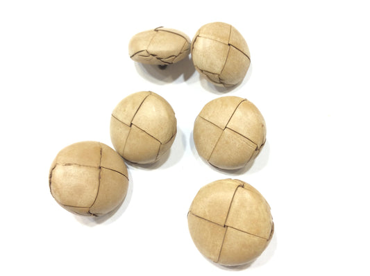 Set di 6 Bottoni in Pelle Vintage, Beige, 2,8 cm