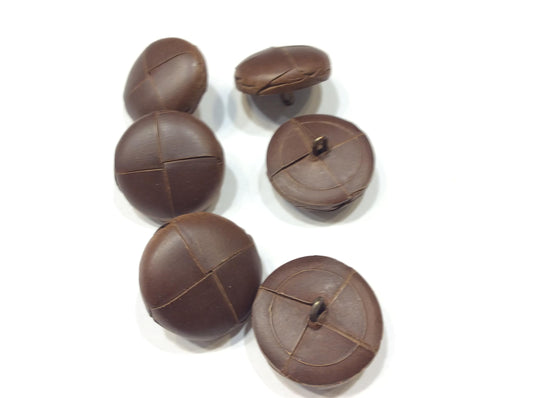 Set di 6 bottoni in pelle vintage da 2,8 cm, colore marrone