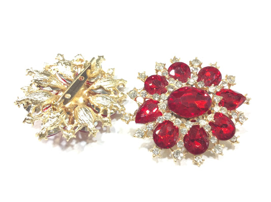 Spilla Ovale con Pietre Rosse e bianche 5 cm circa