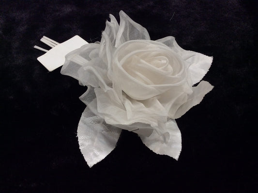 spilla fiore rosa bianca in seta cerimonia fatta a mano