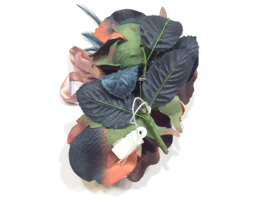 spilla tralcio fiori rosa chiaro in seta cerimonia fatta a mano cm 25