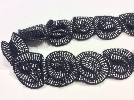 Toscano 1 MT PASSAMANERIA BORDURA in Lana Camelia Bianco E Nero