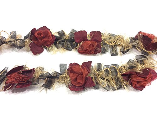 Toscano 1 MT PASSAMANERIA BORDURA Elastica Fiori Rosso