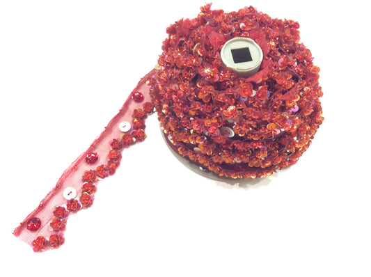 Toscano 1 MT PASSAMANERIA BORDURA Rosso Decorazione Madreperla E Paillettes Alta CM 3,5