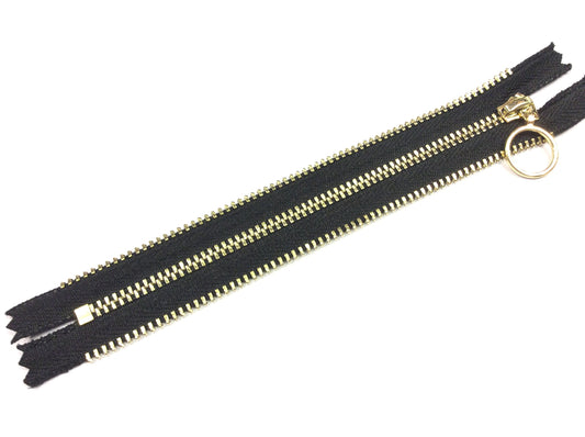 ZIP CHIUSURA LAMPO COLORE NERO CATENA ORO NON SGANCIABILI CM 20