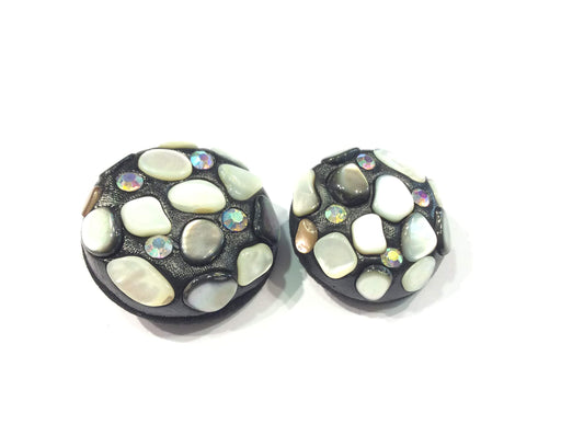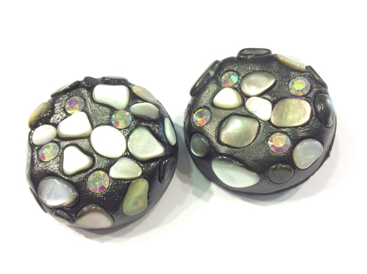 BOTTONE ALTA MODA PELLE NERO PIETRE E CRYSTAL CM 4