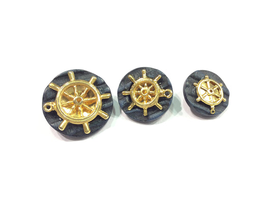 BOTTONE BLAZER UOMO TIMONE ORO E BLU CM 2,5