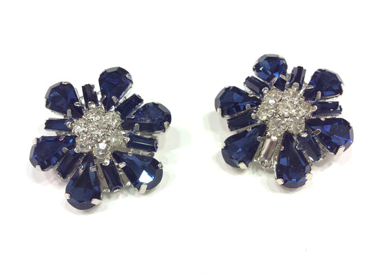 BOTTONI GIOIELLO ALTA MODA BASE ARGENTO CRISTALLI BLU + STRASS ARGENTO CM 3,5