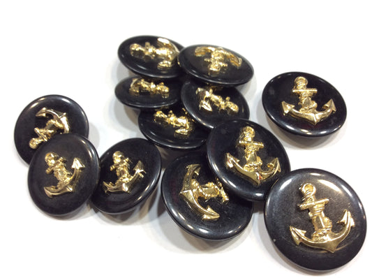 set 14 bottoni giacca doppiopetto nero ancora oro