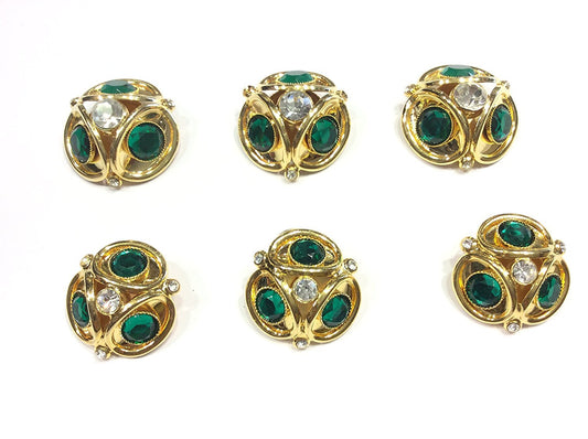 BOTTONE GIOIELLO ORO & VERDE E STRASS CM 3