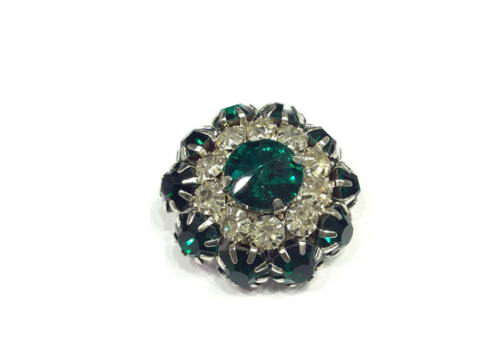 BOTTONE GIOIELLO ALTA MODA PIETRE COLORATE VERDE SMERALDO E STRASS CM 3,5