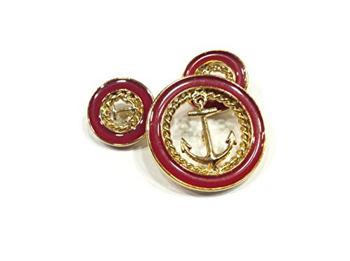 SET 10 BOTTONI ANCORA METALLO ORO LACCATO ROSSO