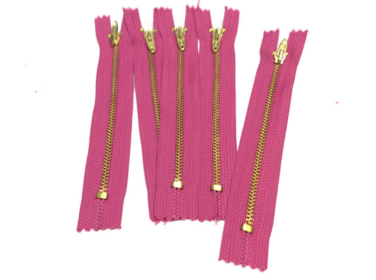5 chiusure lampo in metallo 14 cm, 5 mm, per pantaloni fai da te e cucito FUXIA E ORO