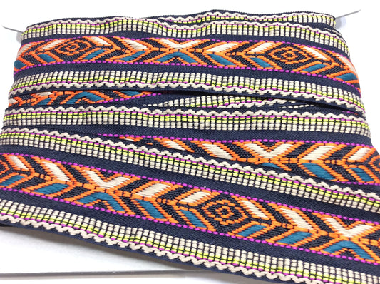 Nastro tessuto multicolor etnico cm 5 aggiunte laterali, tracolle, abbellimenti