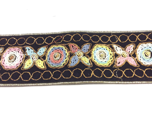 D'Addario PASSAMANERIA BORDURA CM 6,5 Base Nero Ricamo COLORATO Pastello